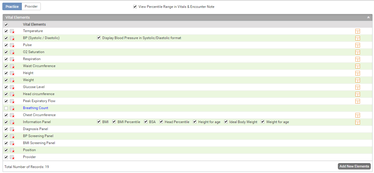 You can also configure the custom vital elements as per your requirement by clicking the Add New Elements button.